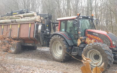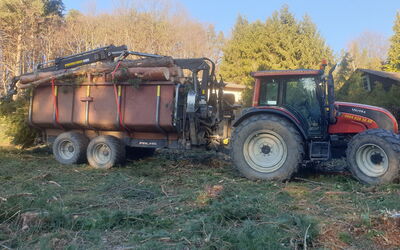- 15t Triebachsrückewagen/8,6m Kran auf 150 Ps Traktor