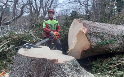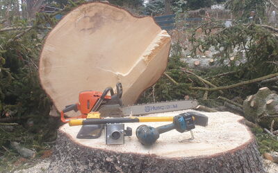 - Motormanuelle Fällung, Sägen bis 120cc und 105 cm Schienenlänge
