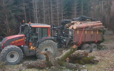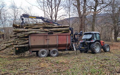 - 8t Rückewagen/6,5m Kran auf 70Ps Traktor