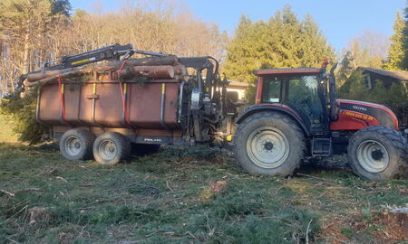 Valtra 150 Ps und Triebachsrückewagen mit 8,6m Kran